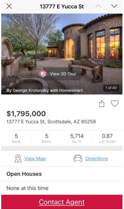 Here’s how the 3D model will look on realtor.com's mobile app - notice the "View 3D Tour" button in the image below: